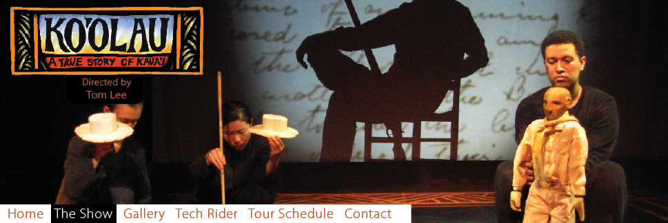 Based on a true story of Hawai'i in the 1890s, this intimate and inventive puppet performance utilizes live music, animated projections, shadow puppets and Japanese kuruma ningyo style (wheeled puppet) figures. Director Tom Lee addresses the powerful themes of this story with puppetry that evokes the poetry of the Hawaiian language and the natural environment of the islands. The piece is performed by four puppeteers, two musicians and two projectionists who animate live shadow and video. Directed and designed by Hawai’i raised puppet artist Tom Lee with live music by Yukio Tsuji and Bill Ruyle.